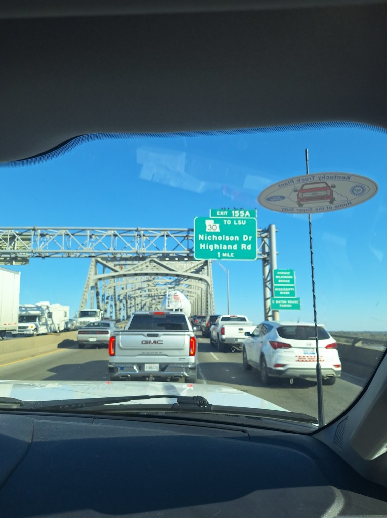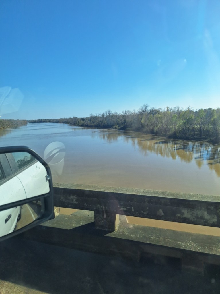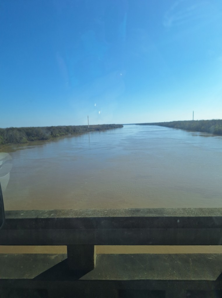 We were on I-10 crossing Lake Pontchartrain. Keep in mind, we’re on the highway and I couldn’t get out to take any of these pictures while hauling a 5th wheel behind us. Next, we were crossing the Atchafalaya River: