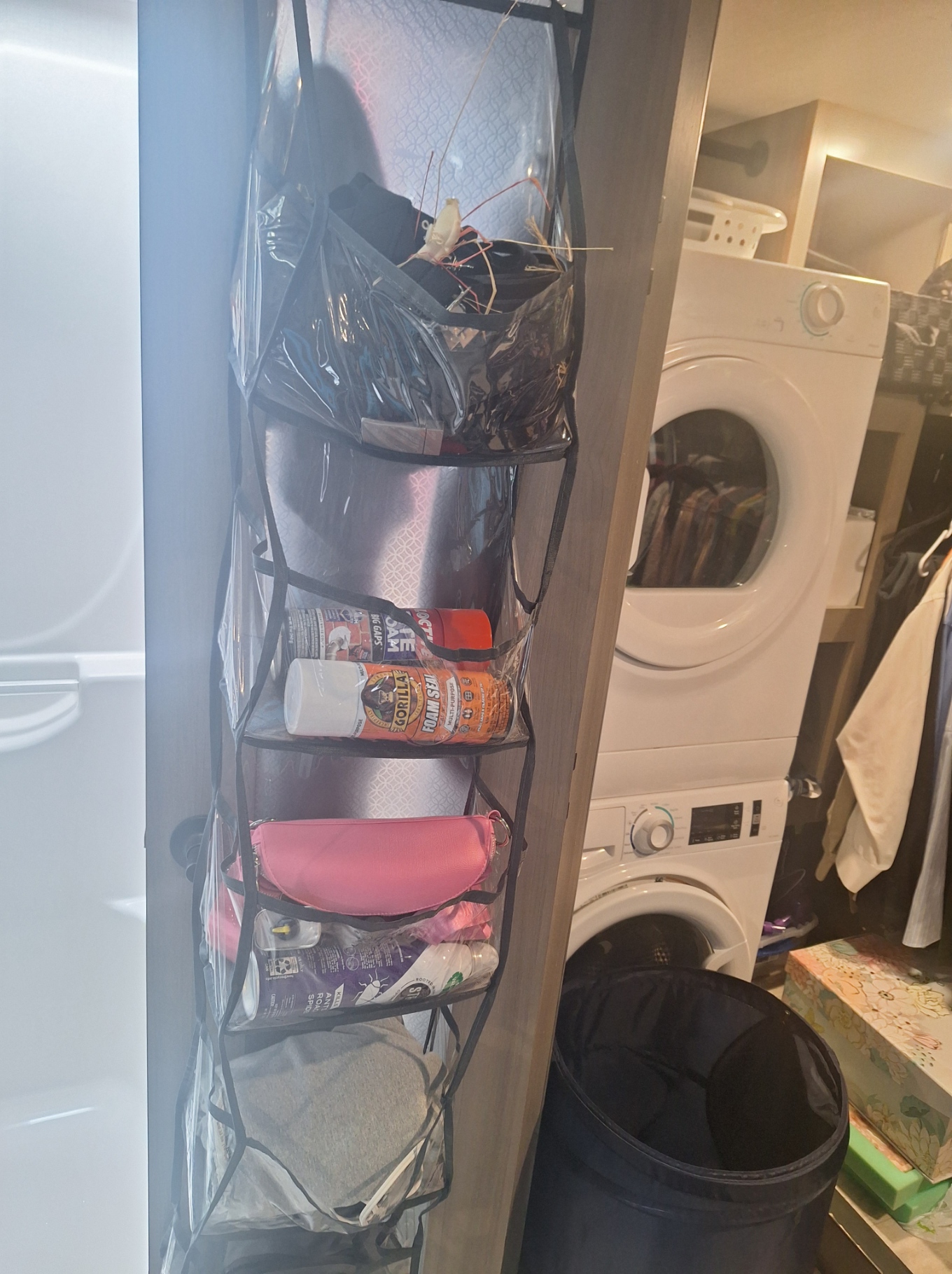 Inside one door, we have a shoe holder. On the other…for everything we can’t fit elsewhere.