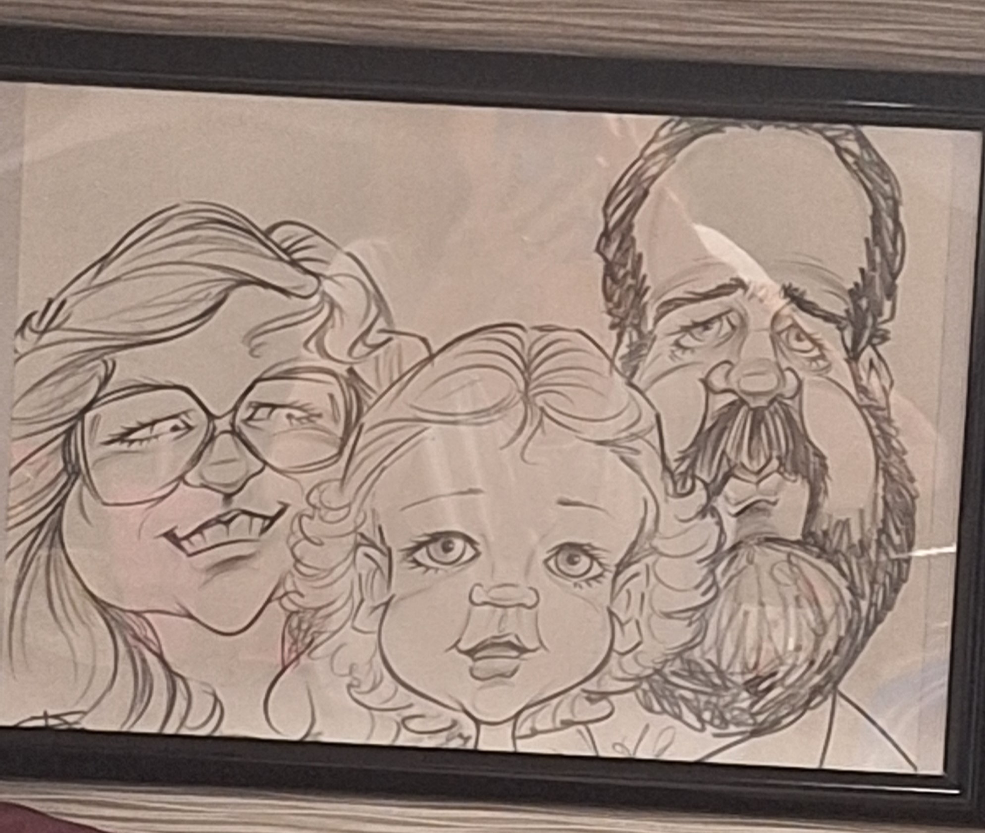 And finally, above our bed, a caricature we had done when our child was around two and a half: