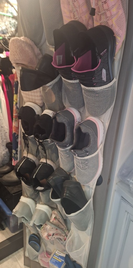 Yes, there IS a pair of Jay’s shoes in there and a place for his slippers, too. Yes, I am weeding out a couple of my shoes. It’s all about issues with arthritic and diabetic feet hurting and finding the most comfortable shoes to wear. Now I have to clean out a couple of pairs that I replaced.
