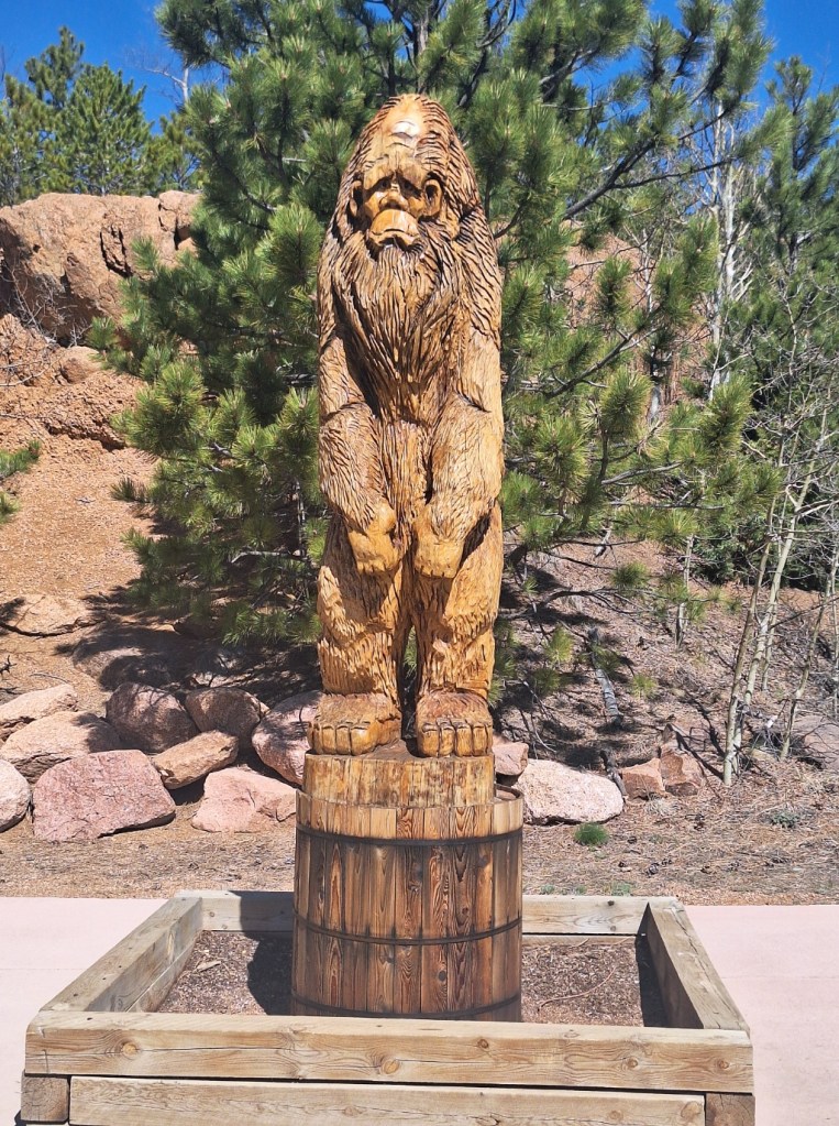 About a mile in, you come to a gift shop. Not much in it, but it does have this big guy standing guard – Bigfoot.