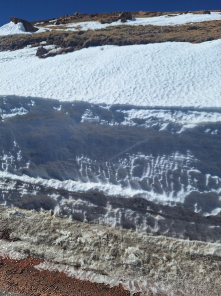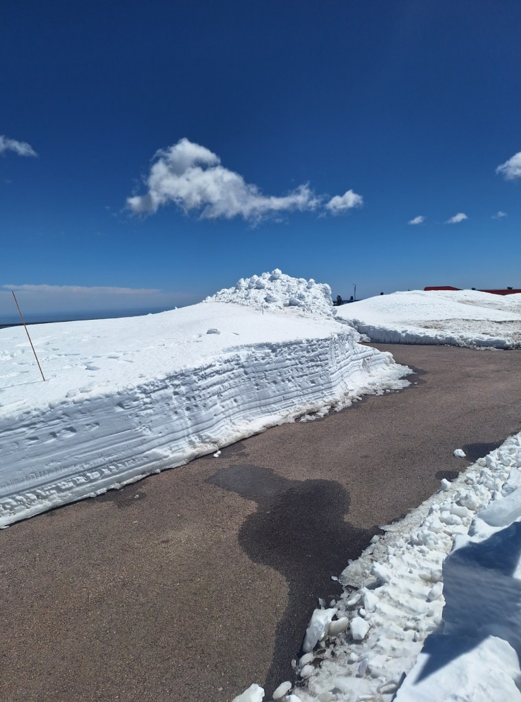 The higher we climbed, the more snow appeared, having been plowed to clear the road, but it shows how deep the snow was in some places.