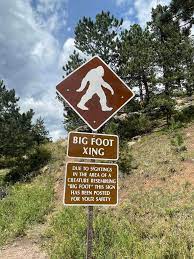 Sometime after the 1990s, there were several alleged sightings of Bigfoot, one by an eleven-year-old boy and his eight-year-old brother. That prompted this sign to be placed along the roadway:
