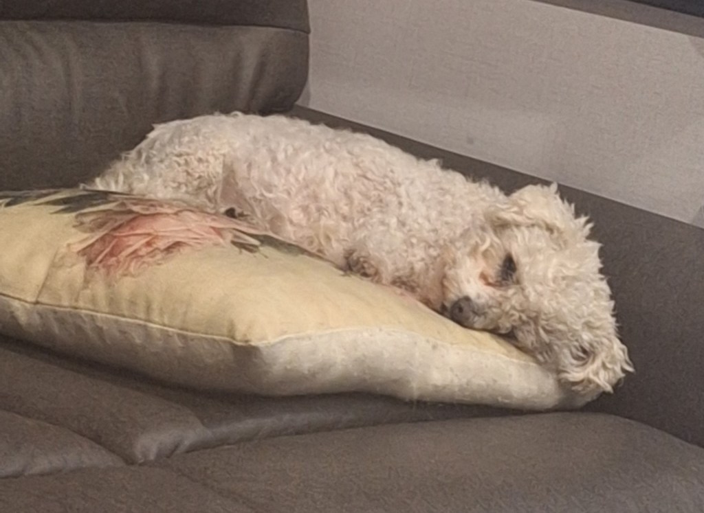But since then, we’ve had some rather hot days. It’s so hot, our two dogs haven’t wanted to go out in it much. They are quite the joy to have around, though. My boy, Tristan, who will be 12 in about two weeks: