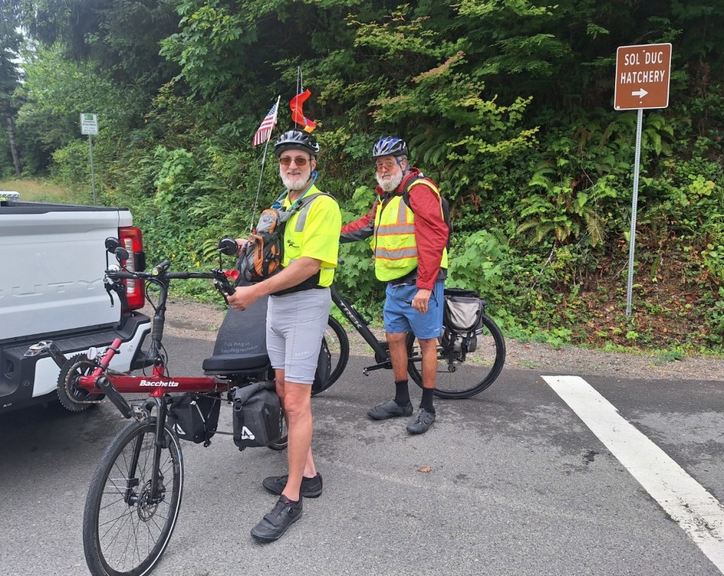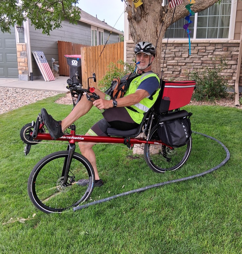 Do they look enthused? Ready to go? Does one look more excited than the other? Well, that would be the case. Jay is exhausted. While Art has continued riding his bikes regularly since they rode from Denver to Yellowstone, over 600 miles in one week, twenty-eight years ago, Jay…has not. He kept riding for several years, twenty miles or so to and from work, but in time, he stopped. A year or so ago, he bought a recumbent, similar to what Art is riding. Unfortunately, the type he bought was a brand that did not work for him at all. Jay is stubborn, though, and he wouldn’t give up trying to ride it. He watched every YouTube video he could find on it. He read every tip provided. And we both listened to the company owners telling us that it’s a learning curve. Jay felt it was a failure on his part because of their insistence that he could learn it. And we saw people who could. I have to say, none of them seemed to be his size. Jay has never let being six feet three inches and around two hundred and forty pounds stop him from anything! He wouldn’t give up. What did this result in? We are stuck with a $2400 recumbent bike that we have yet to sell to anyone (for only $1200), featuring an upgraded aluminum seat instead of a plastic one. Other people can ride these bikes. We’ve seen them in videos. But Jay simply couldn’t. If you are interested in a Cruz Bike, let us know. Currently, it’s in Colorado Springs, Colorado, at Art’s house.