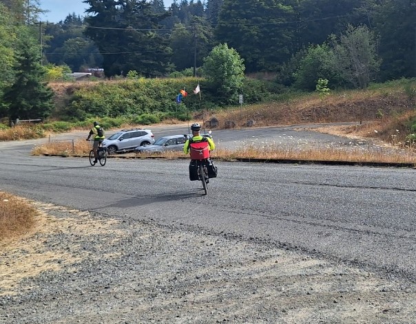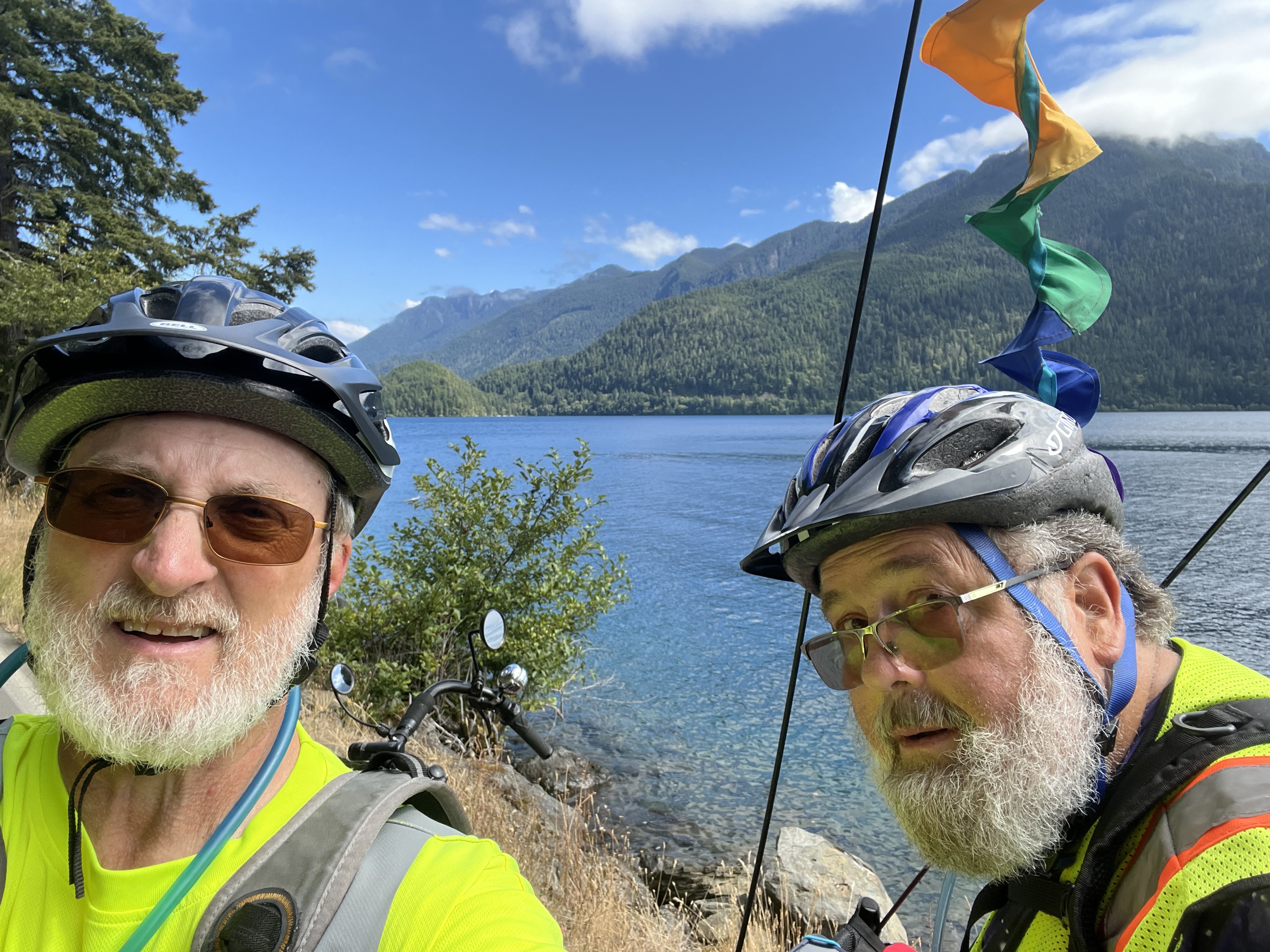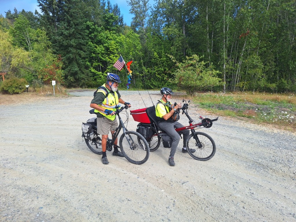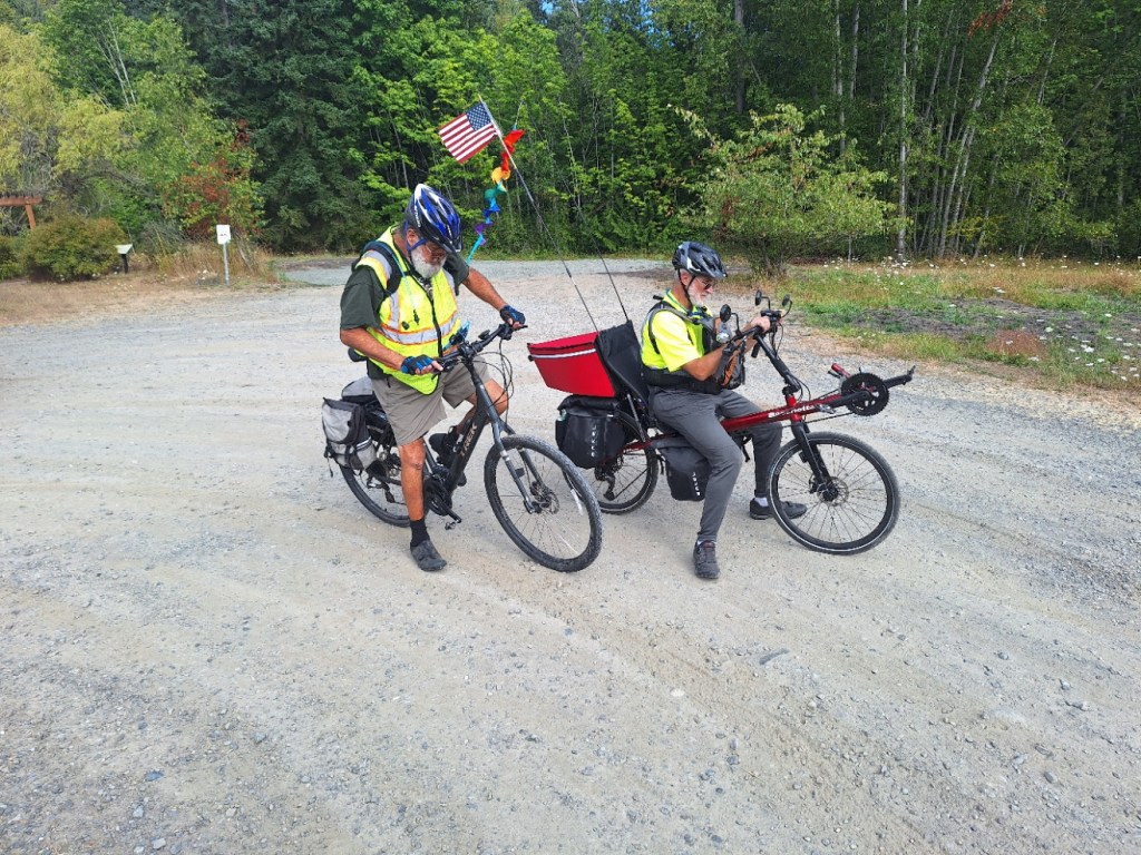 These two lunatics have been friends for around 28 years or so. And they take care of each other. They do things they enjoy together. This was a big idea that Jay had. He just hasn’t been ready like he thought he would be because of the recumbent bike issue. So Art is “team” riding for them. What Jay can’t do now, Art will finish. They’re crazy, but they sure are a couple of good guys!