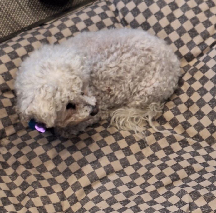This allows me to tell about a man I met while we were waiting for our spot to become available in Elwha. You might recall, we drove over thirteen hours and spent the night at a rest area. After we woke up, we noticed a Walmart in town. They always have big parking lots available, and we needed to pick up a few things. That is where we chose to park until we could pull into our reserved spot, as someone was in it and had several hours before they had to check out. I got out to walk our littlest dog, Sophie: