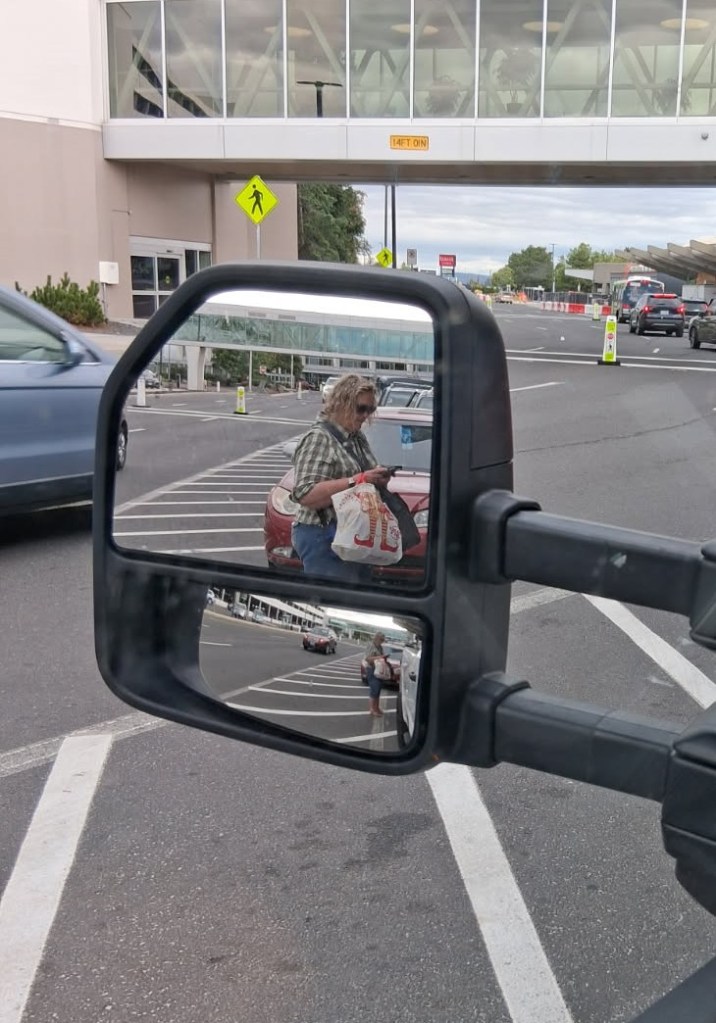 Jay took a quick photo from the rearview mirror because he had almost forgotten:
