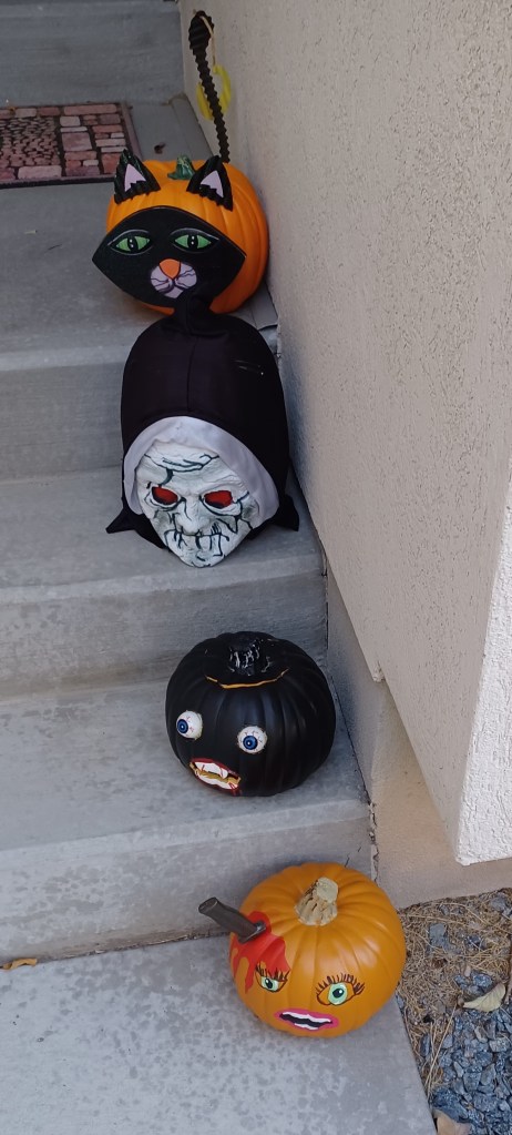 Let me start by saying my family LOVES Halloween. It’s right up there with Christmas for us. We went all out to decorate when we owned a house, at every house we lived in. Here are a couple of examples. Our yearly Graveyard that our child now has: