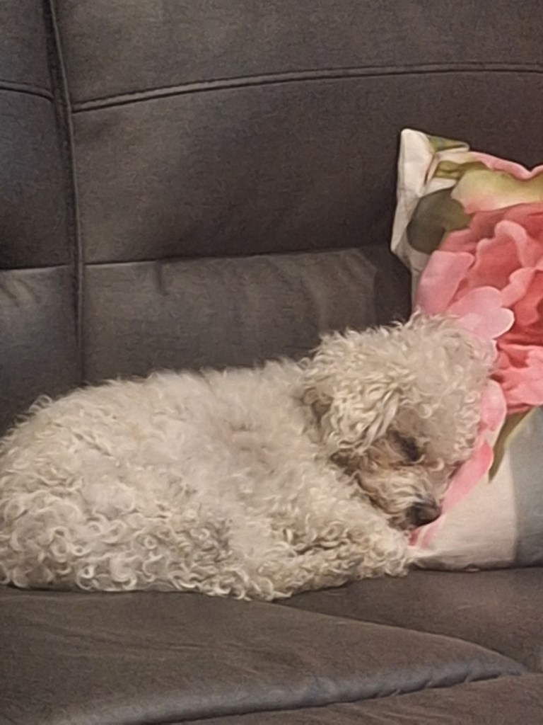 In the meantime, our little pups give us lots of joy. Both are aging, and that’s been hard to watch. Here are a couple of pictures of Sophie, aka Lil Bit, and Tristan, aka My White Knight: