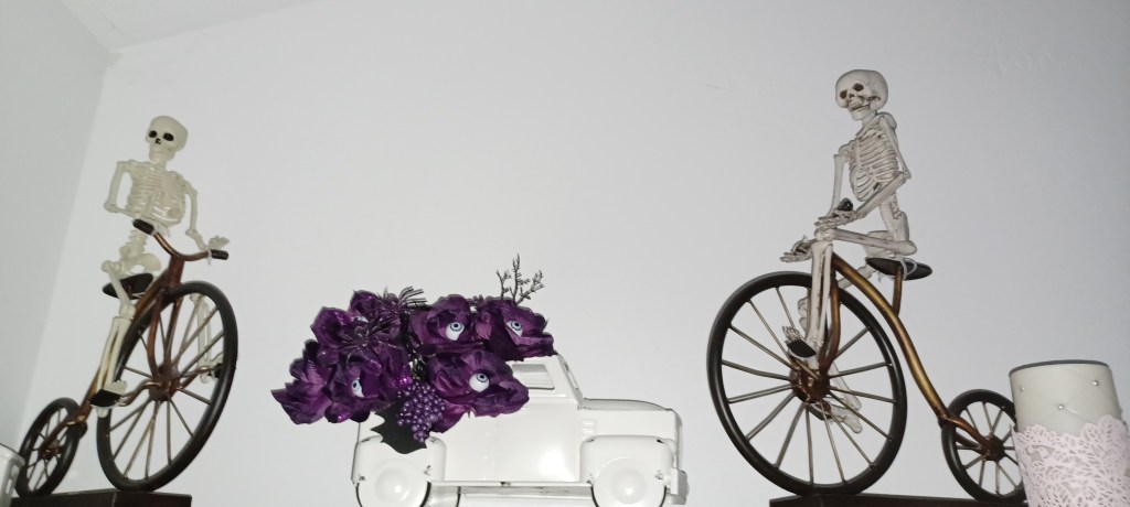 I love skeletons for Halloween! I used to put some on two Victorian-style bicycle sculptures I had in my house: