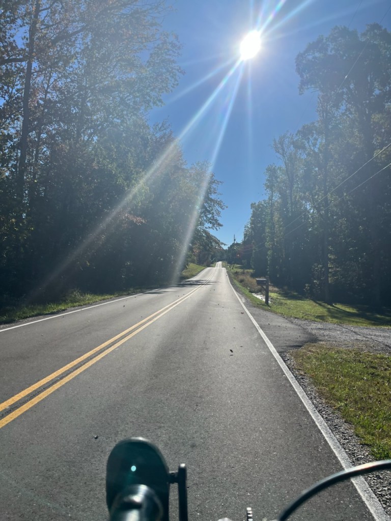 Hill number three. Look how long it goes on. Plus, what a beautiful photo with the sun shining down on him: