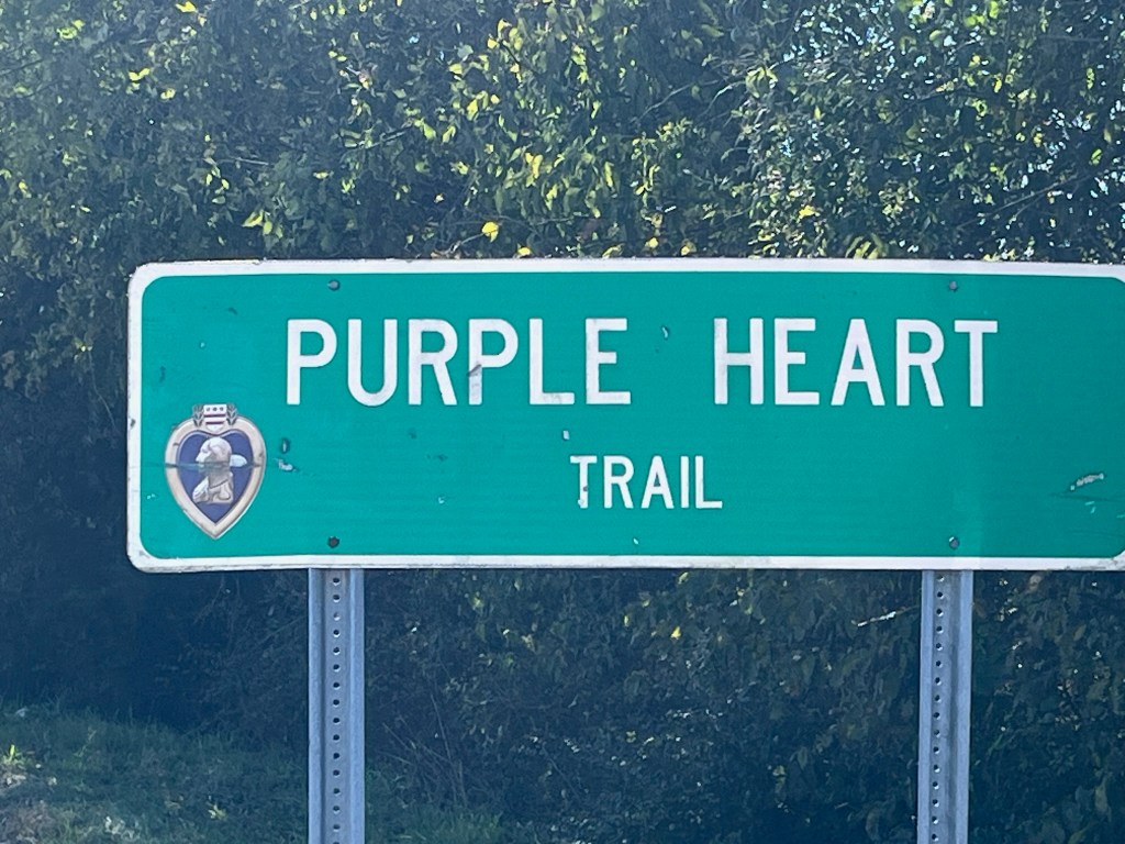 Our Hero has been in Tennessee. He made it sixty miles today! And rode along the Purple Heart Trail. My father was in the Army for twenty-three years. He was in the Korean War and had three tours in Vietnam. On his last trip, he was shot in the leg, which bothered him for the rest of his life. He was awarded The Purple Heart. Before he passed, he gave it to one of my brothers.