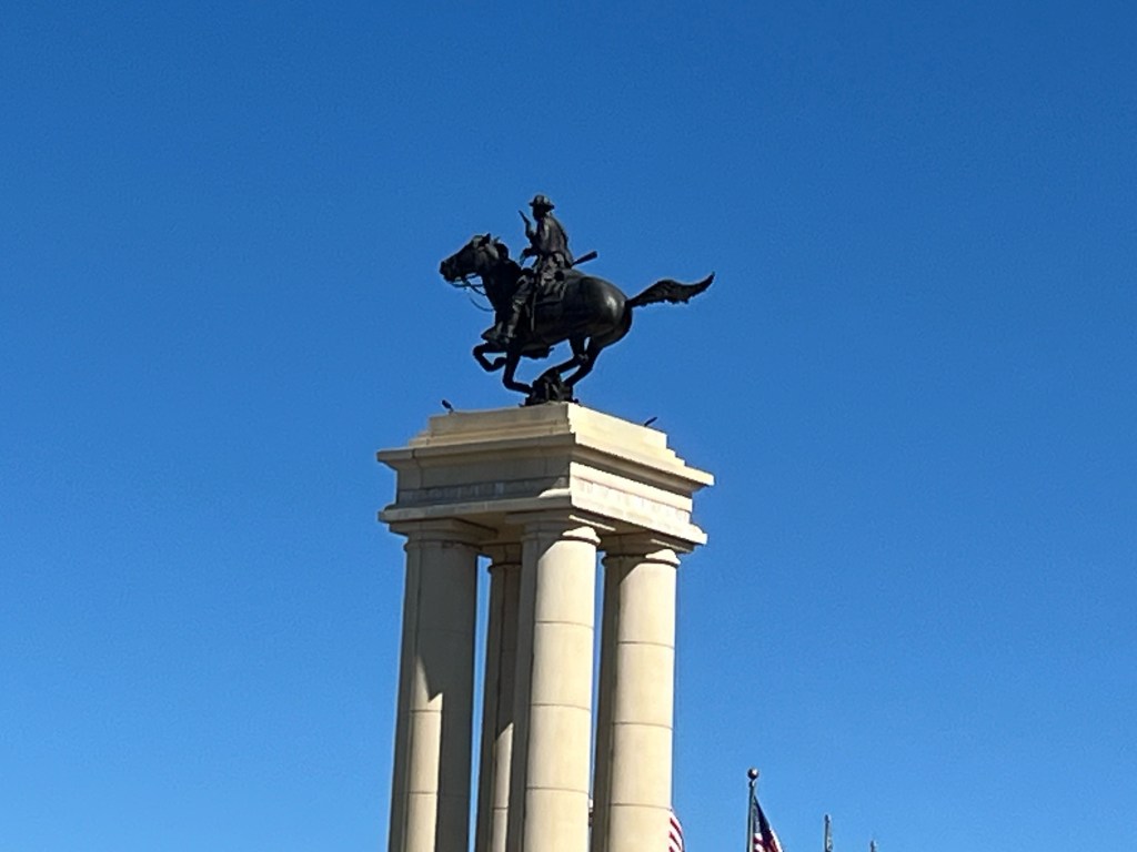 Passing Fort Benning, soon to be called Fort Moore, Georgia, he took photos of some statues in the area. The first is the Follow Me Statue: