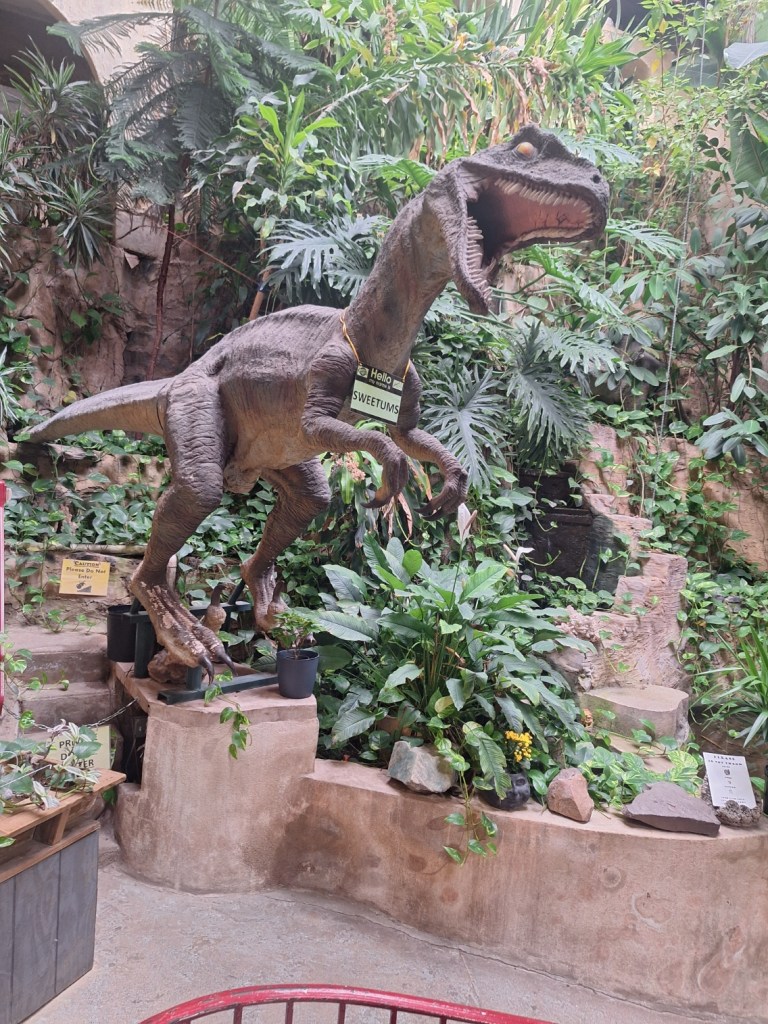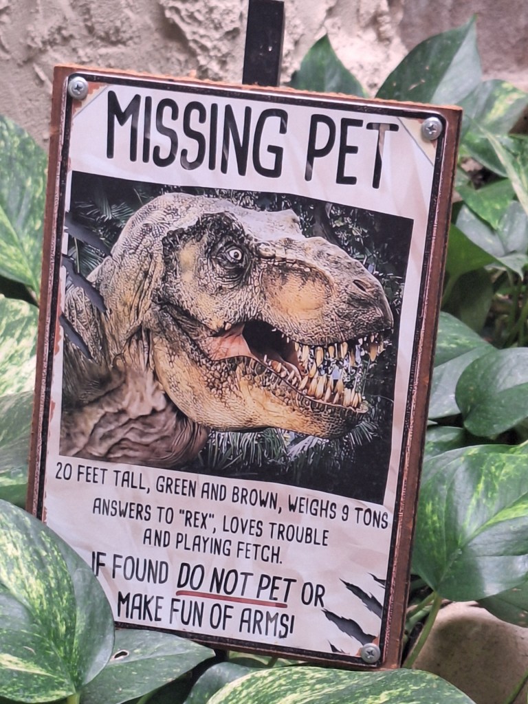 I’m pretty sure that fence isn’t going to hold him back. There was an advertisement for a missing dino. (He has little arms):