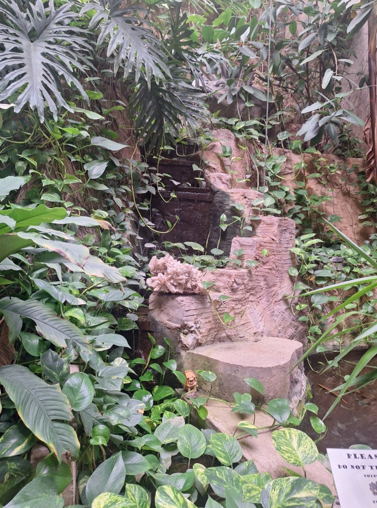 A pretty waterfall and plants filled the area, too. No swimming allowed:
