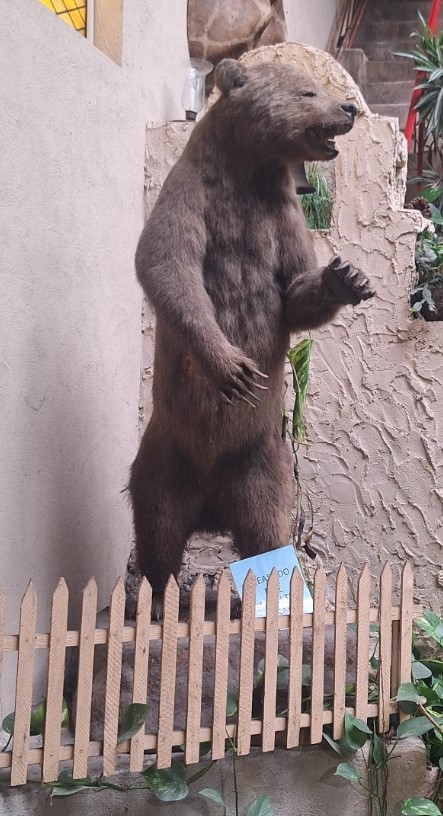 Before entering the caverns, there is an area with old rifles, rock samples, and other displays. I met Sweetums: