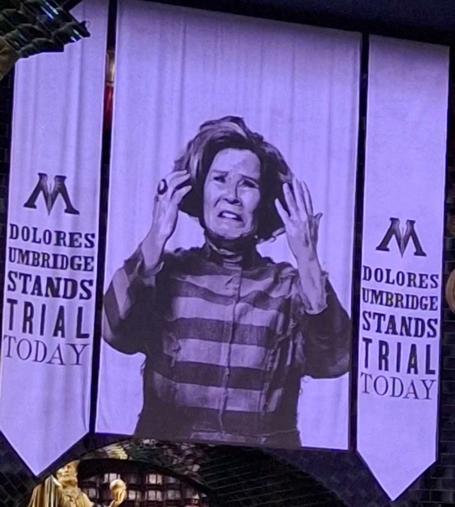 Today was the trial of Delores Umbridge. She’s been in Azkaban, so she’s losing it. It was a video of her, but I haven’t sorted out adding videos yet:
