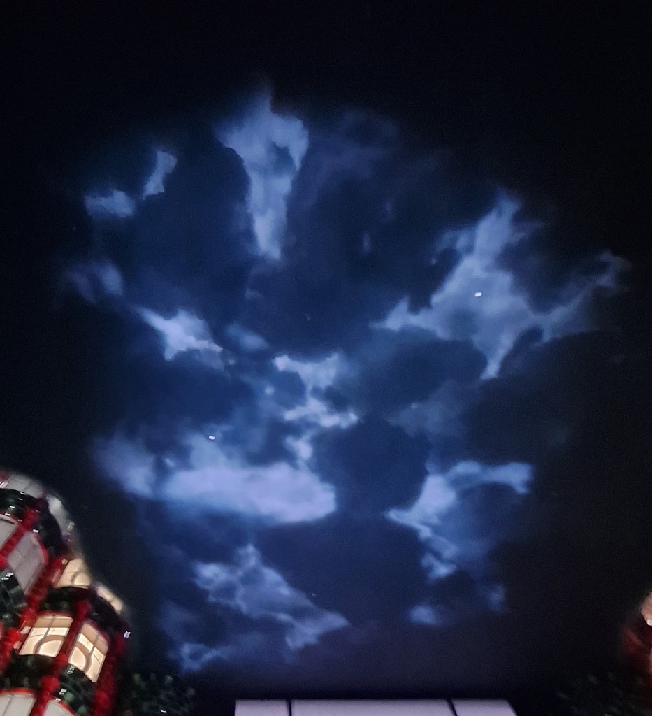 I tried to photograph the ceiling with a storm brewing. This doesn’t do it justice: