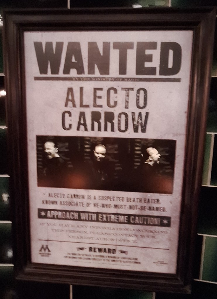 In the halls were many Wanted posters of Voldemort’s followers. Oops, I mean, “he who must not be named”: