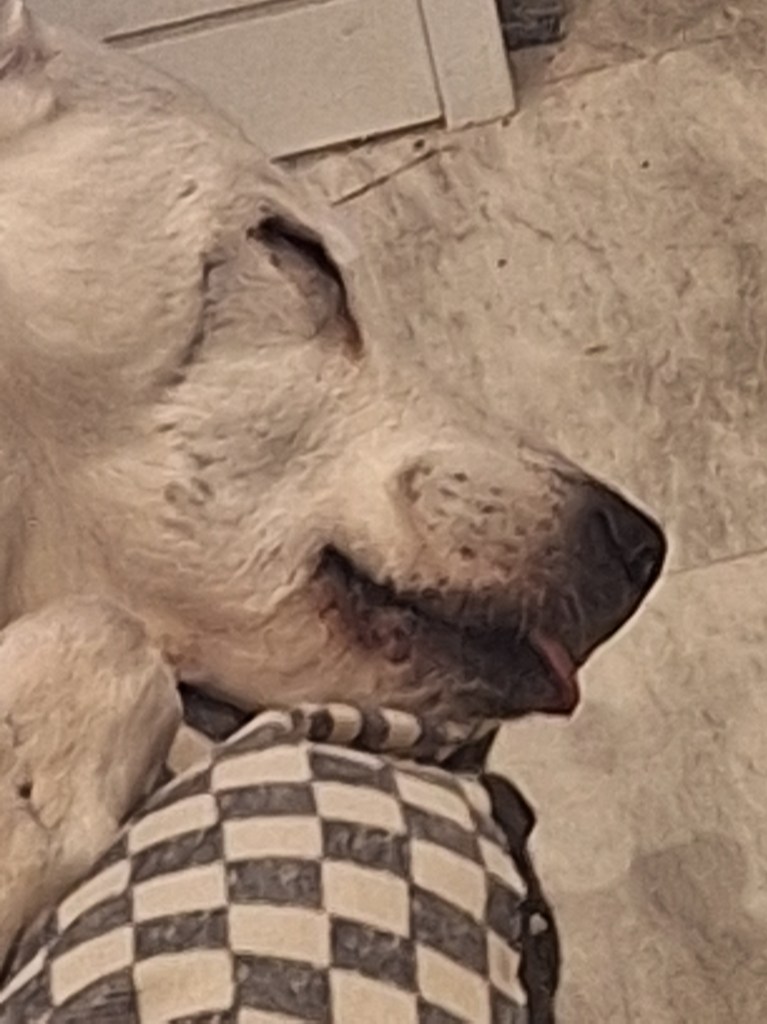 Sleeping with his tongue stuck out. I’ve never seen him do that before: